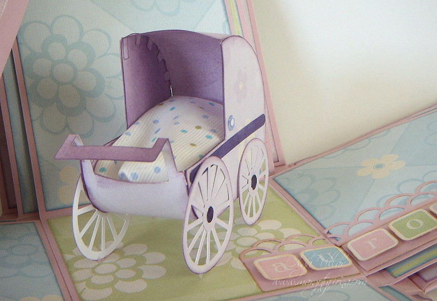 Una vez abres la caja, llega la sorpresa con un adorno único en forma de cochecito de papel, eso si con su colchoncito blandito y su colcha a juego, je je.