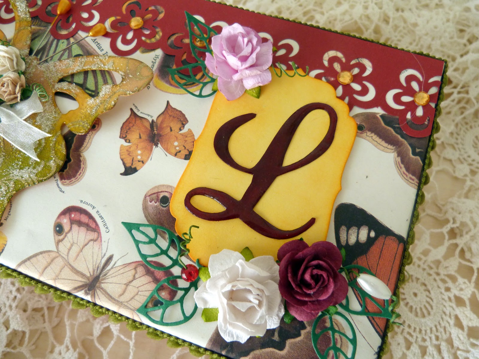 En la parte derecha de la tapa la inicial de Luisa cortada con la Craft en cartulina granate y embosada tres veces con Utee.