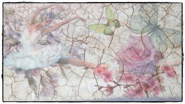 En el interior de la caja puse un stencil en rosa muy suave y una imagen de otra bailarina rodeada de pintura color plata en relieve.