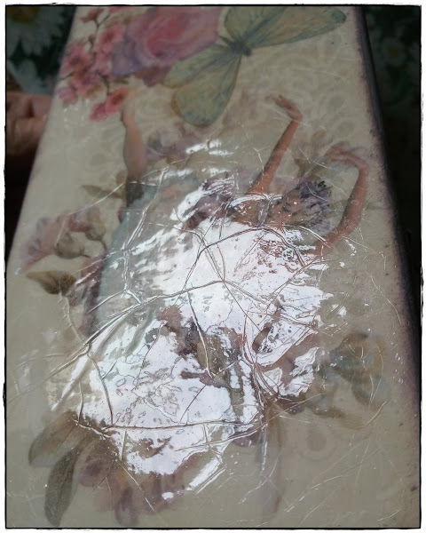 Dejaremos secar y aplicamos el craquelador del bote 2. Lo aplico con los dedos,pero haciéndolo en distintas direcciones.