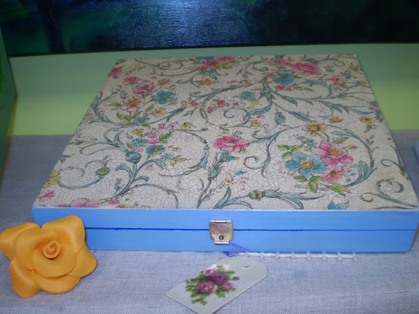 La flor que veis junto a la caja es de goma eva y la chapita de madera y con una rosa en decoupage me la regaló mi amiga Olivia del foro.