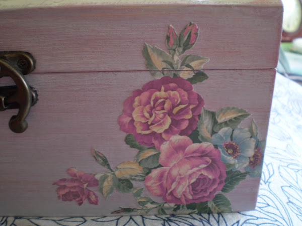 Antes de seguir con la colección de mis cuadros, os voy a enseñar una caja que realicé con pátina rosa y con decoupage.