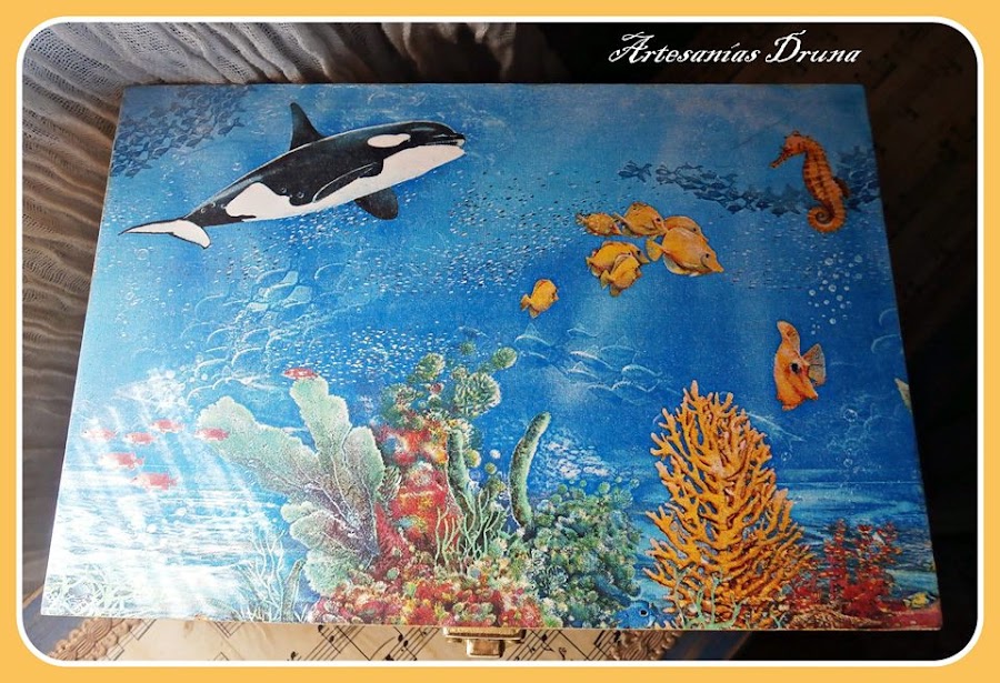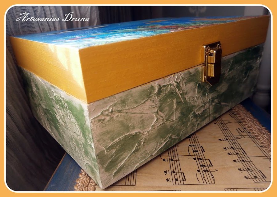 Esta cajita de madera me la consiguió mi querida Mar, y se fue para mi querida Mamen. Está realizada con acrílicas, entelada con doble faz y stencil.También va decorada con tela de arpillería barnizad ...