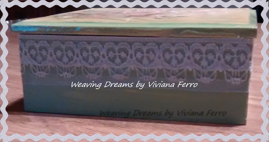 En esta ocasión lo apliqué en la tapa de una caja de MDF en la que pinté con acrílico unos motivos florales y luego decoré con una mariposa realizada con pasta para modelar. Una vez seco apliqué el vidrio líquido como se detalló anteriormente.