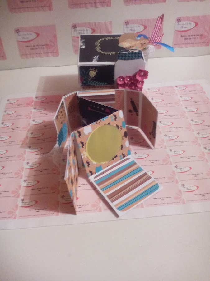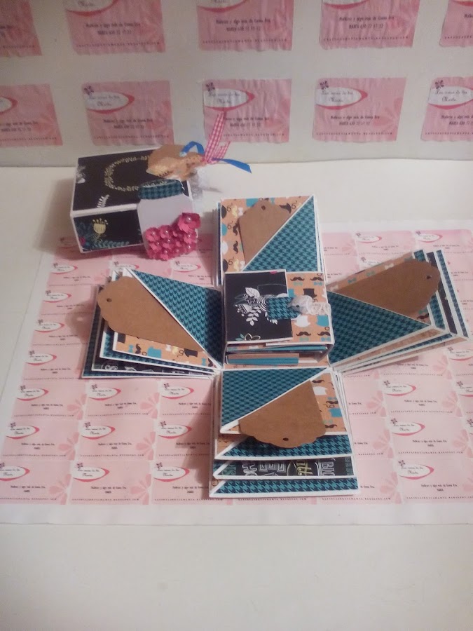 Para el interior he hecho un "mini álbum sorpresa" y así completar nuestra exploding box.