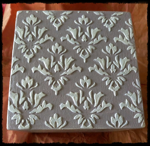 Pinté con acrílica color sándalo y luego volví a colocar la plantilla para pintar los relieves en color piedra.Podría haber terminado con pátina, pero me gustó así..¿no os parece?