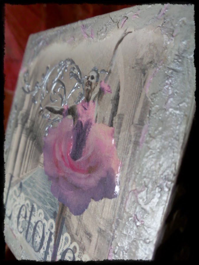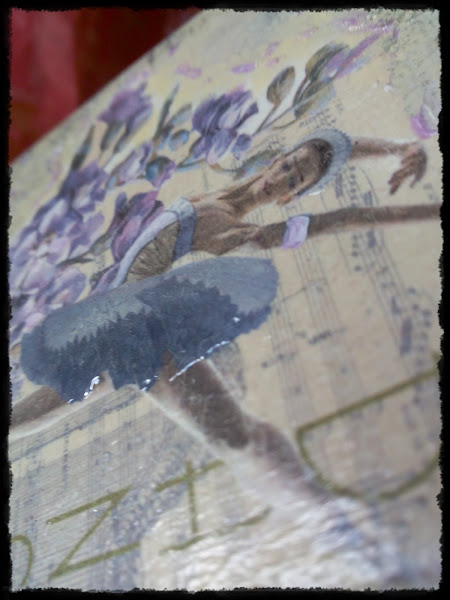 He realizado una caja que he adornado con imágenes de bailarinas , stencil en relieve y en la tapa un craquelado.