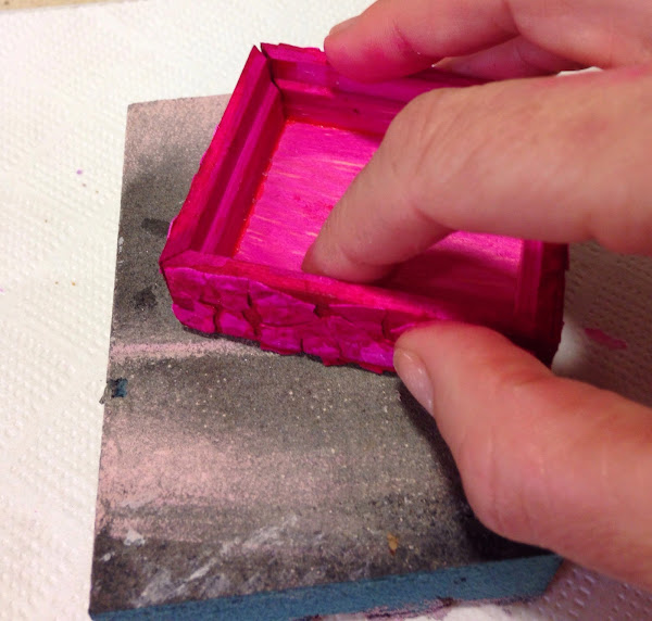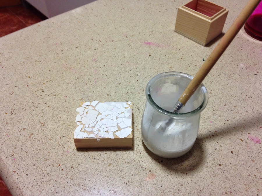 y empezaremos a trabajar la tapa, lijando suavemente con una lija vieja hasta que consigamos un resultado como sí estuviera desgastada, (a mi me gusta sacar parte de tinte para resaltar la cascara)