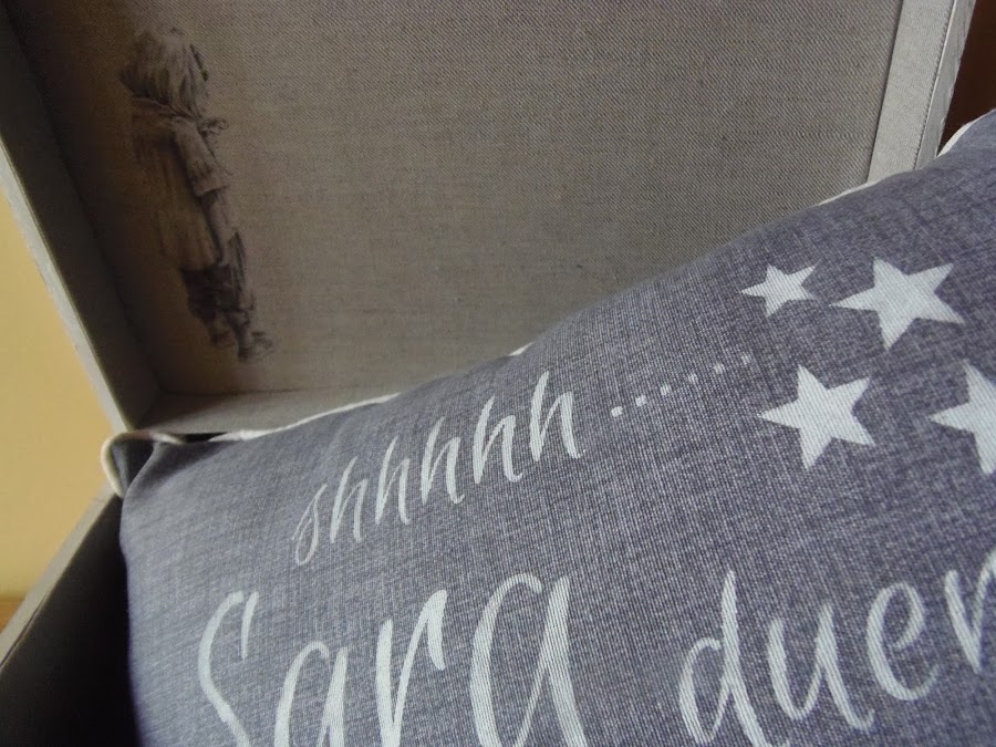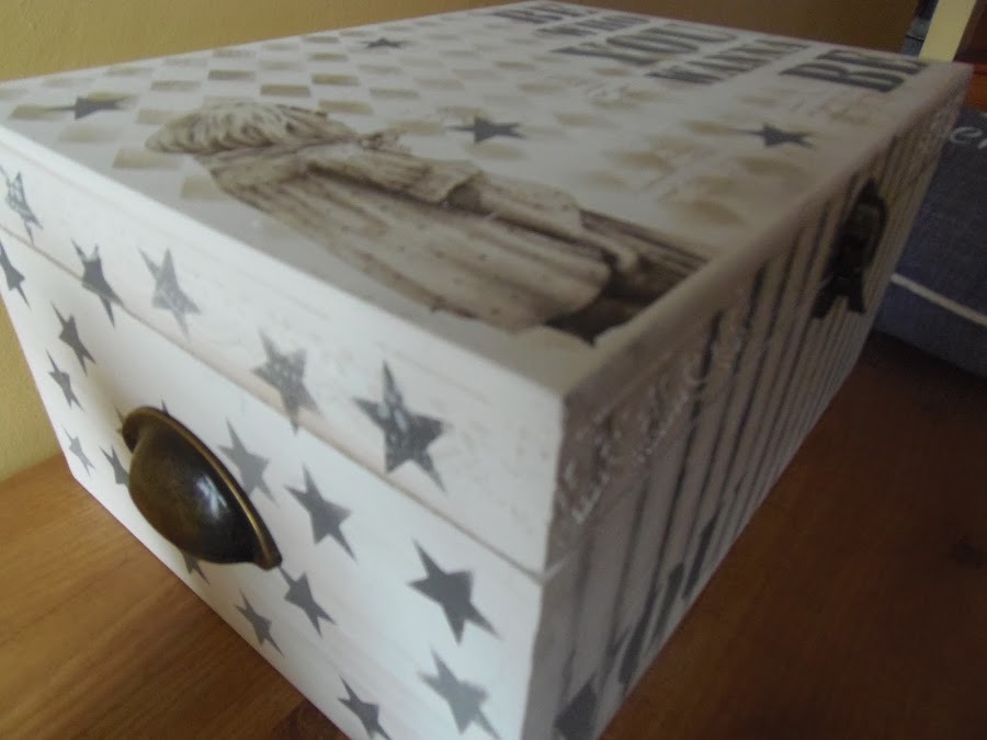 La caja es una normalita de madera pero de tamaño xl,la he decorado en tonos blanco,gris y lino