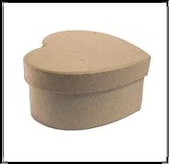 Una caja de papel maché con forma de corazón.