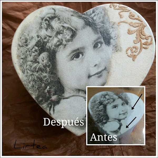 Dejamos secar y aplicamos otra segunda capa de medium sobre la imagen y sobre toda la tapa de la caja así evitamos que queden marcas del pegamento.
