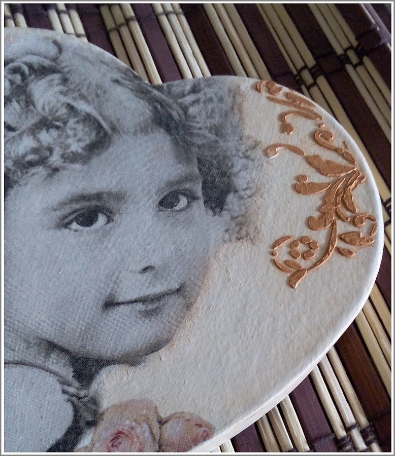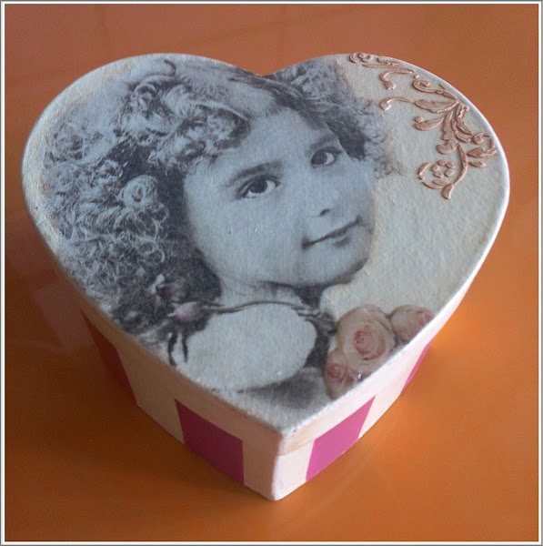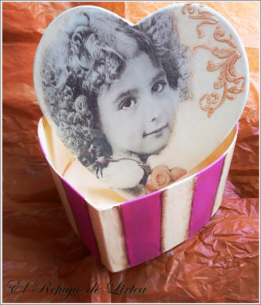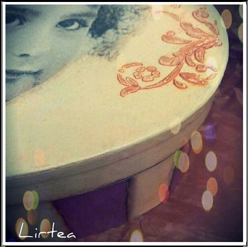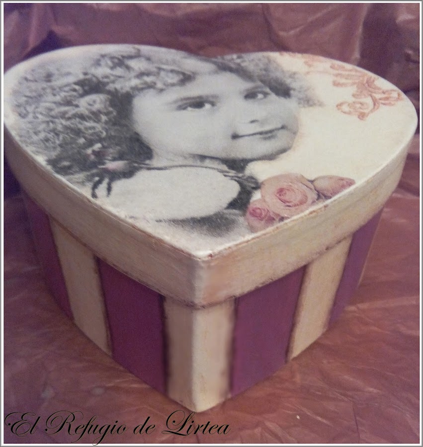 Una vez pintada y seca, hago el decoupage sobre la tapa de la caja.