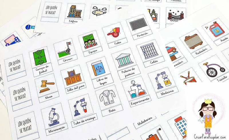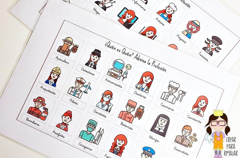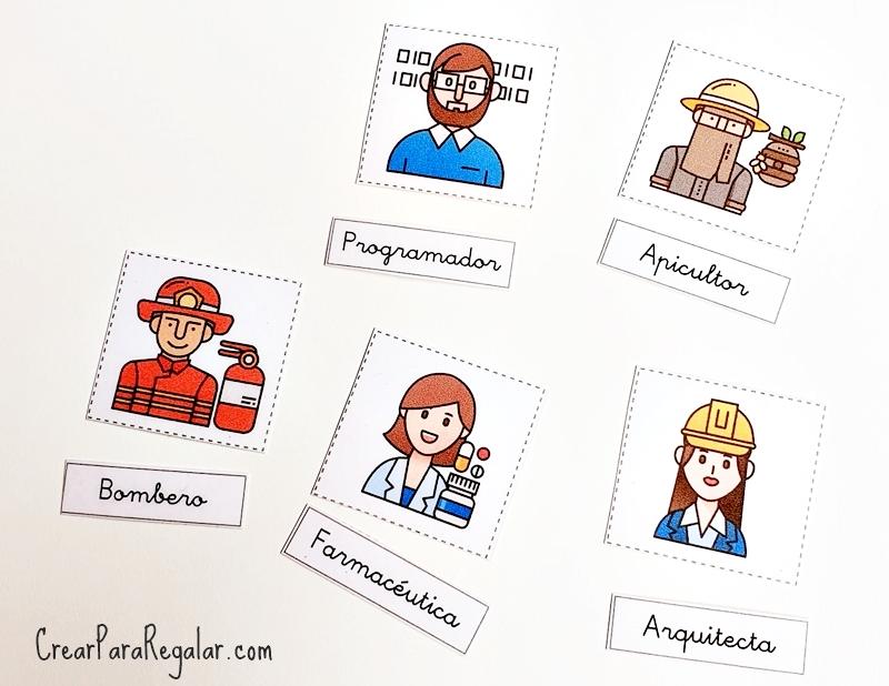 Las profesiones que encontrarás en la caja de actividades son las siguientes: