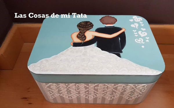 Así de bonita quedó esta caja donde Mari Carmen va a guardar distintos detalles de la boda de su hija, una manera única para conservarlas.