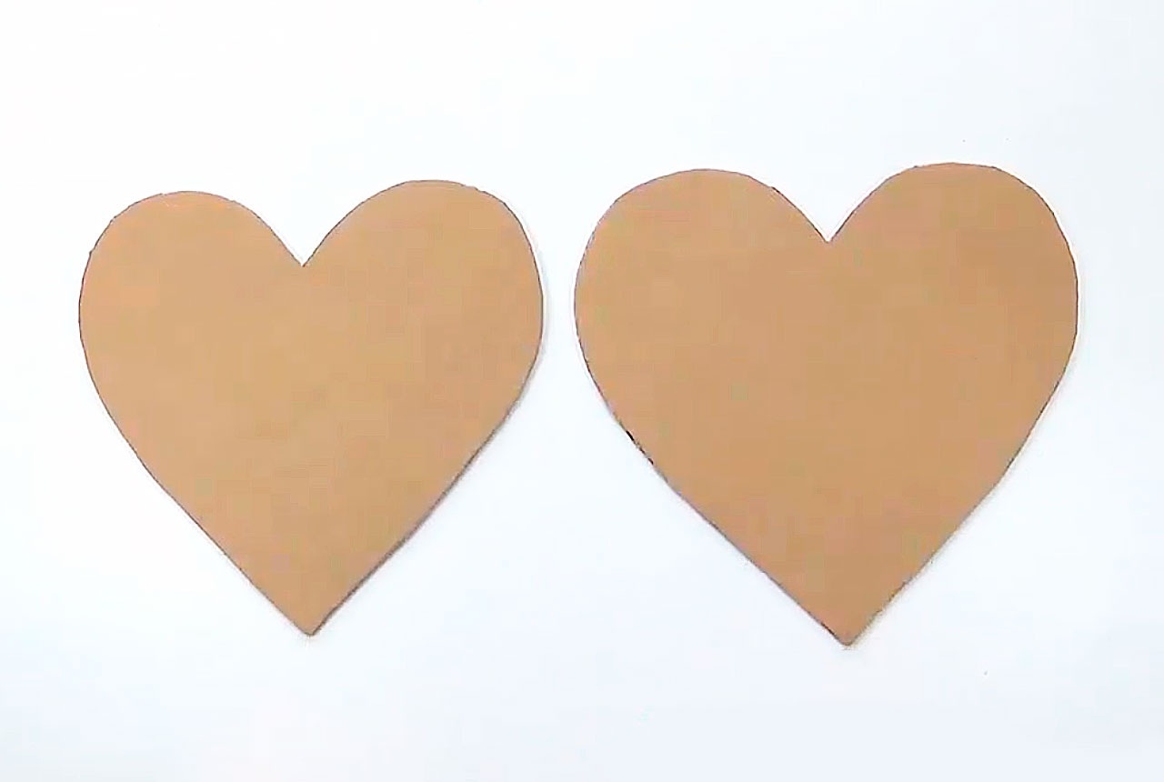 Corta 2 corazones de cartón, uno 1/2 cm más pequeño que el otro.