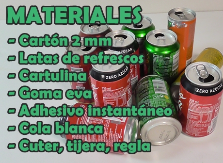 Hoy en día es importantísimo el reciclaje, así que para la decoración de la caja voy a utilizar latas de refrescos, vamos a comenzar con los materiales.