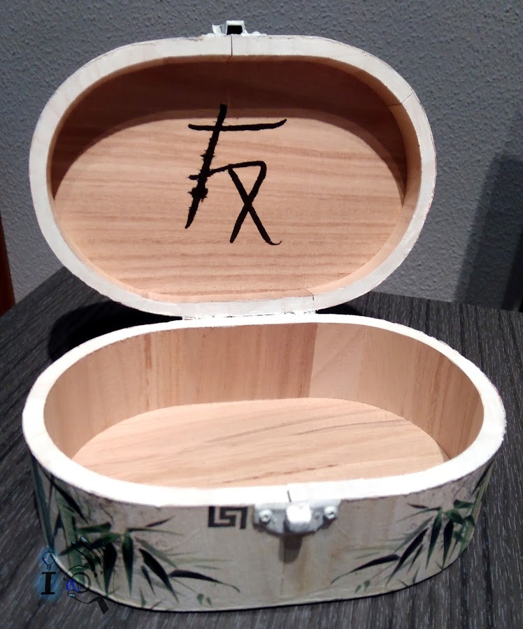 Luego decidí poner en la parte interior de la tapa la palabra "amistad" con su símbolo japonés, escrita con pincel y con tinta sumi, que es la típica que utilizan ellos para aprender a escribir en las escuelas. Pero al hacerlo me encontré con un pequeño problema con el que no contaba....