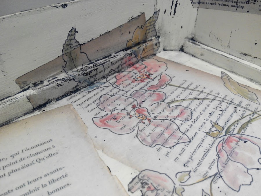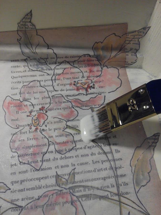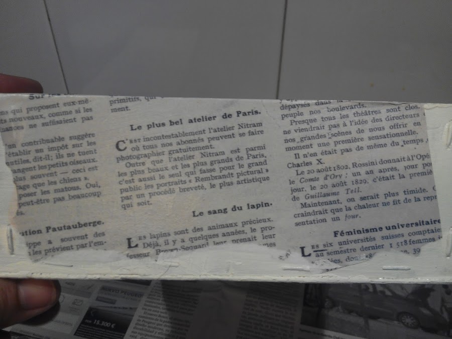 Una vez seca, es decir, casi enseguida, di una segunda capa del color Encaje, esta vez cubriendo más porque quería poner papel de decoupage de adorno y necesitaba fondo claro
