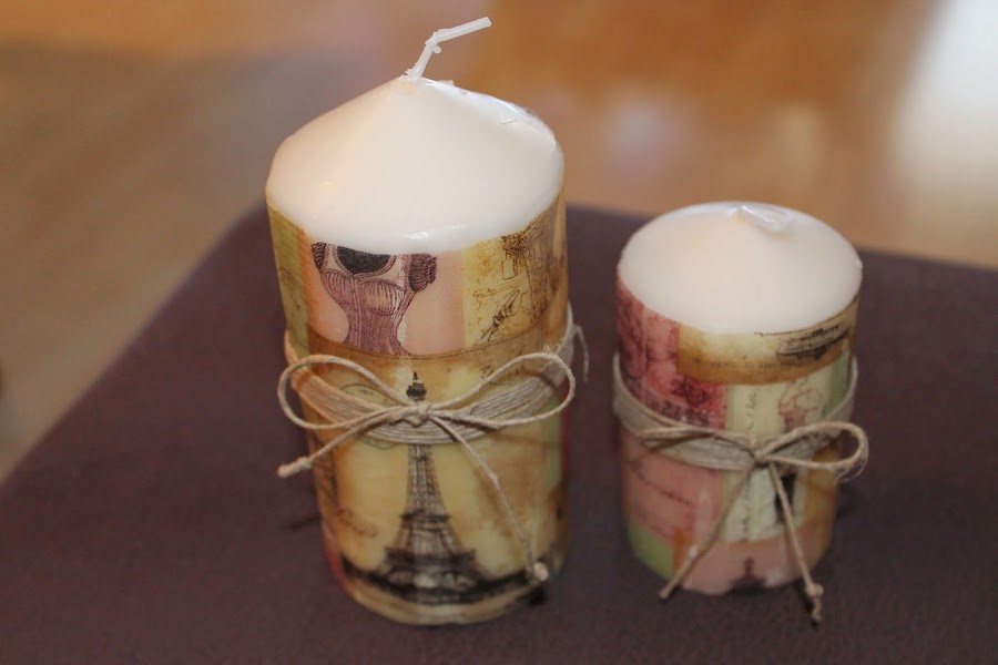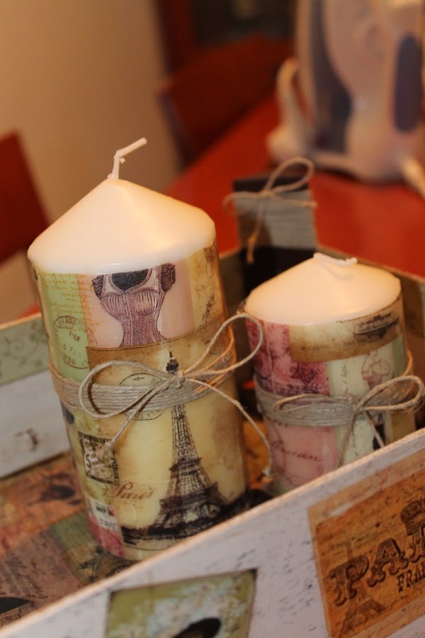 Las velas las hice con la misma servilleta que utilicé para el fondo y los laterales de la caja...