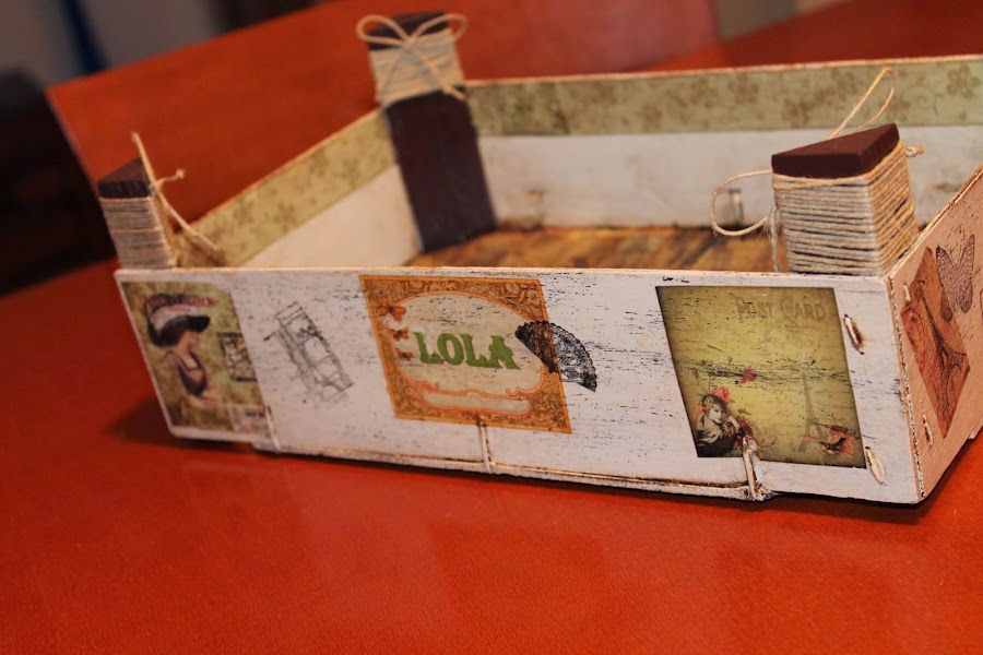Esta caja la hice pensando en una amiga mía, Lola, que me inspiró estas imágenes... La verdad es que le gustó mucho y la puso en un sitio privilegiado en su casa...