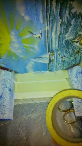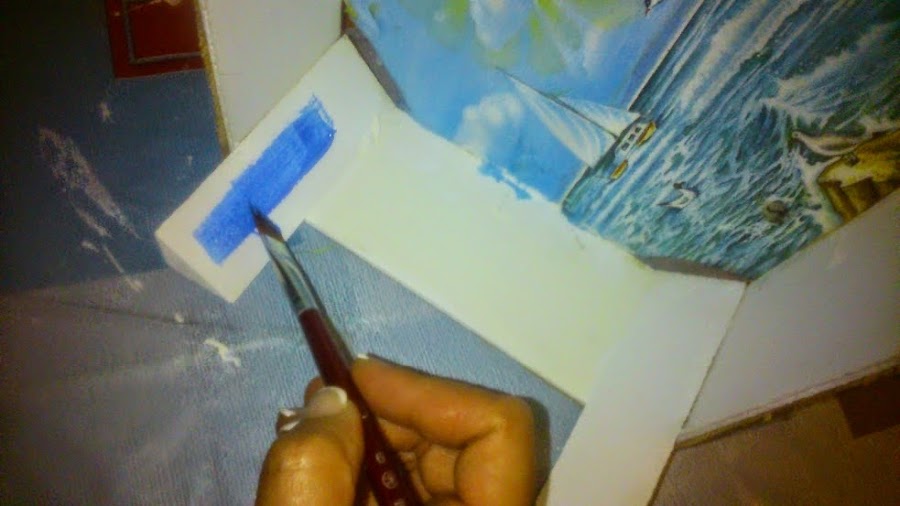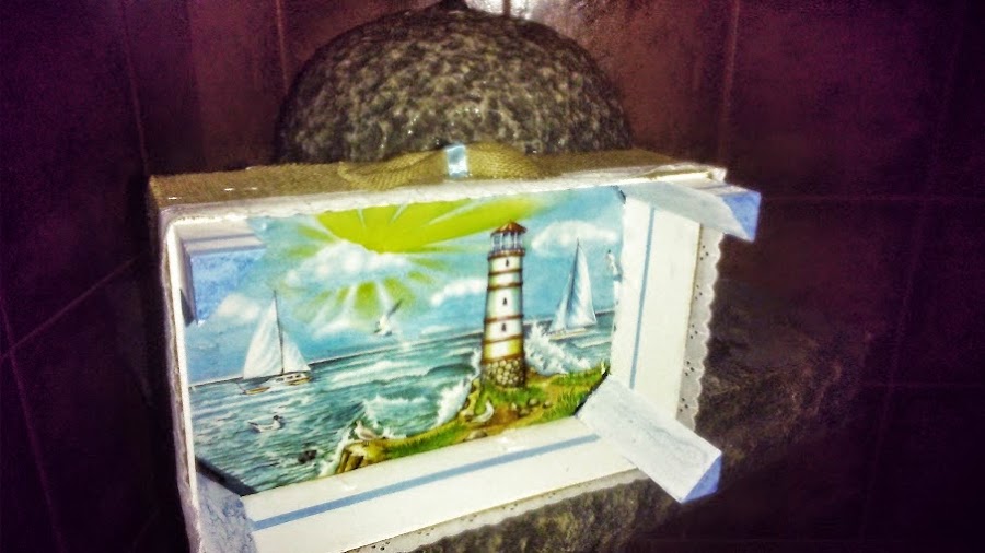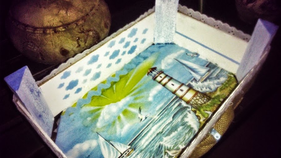 Dando vuelta e improvisando, porque no tenía ni idea que hacerle, Le pinte las patas de la caja en azul y ya deje volar mi imaginación.