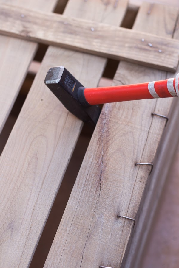 Mi caja solo tenía un defecto, un tablón abierto en la parte de abajo (lo puedes ver en la foto anterior). Cuando tienes grietas o piezas sueltas que se pueden arreglar, lo mejor es usar pegamento de contacto ultrafuerte. Vamos, super glue de toda la vida. Así que eso hice: puse pegamento, hice palanca con el martillo para mantener la pieza pegada y al cabo de unos segundos ya lo tenía arreglado.