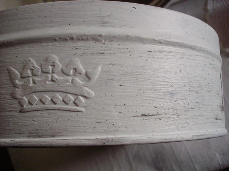 Una vez seca hice en relieve tres coronas en los laterales de la caja.