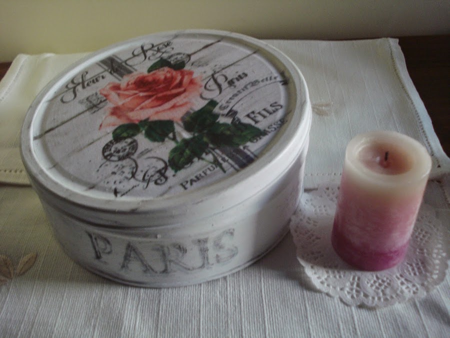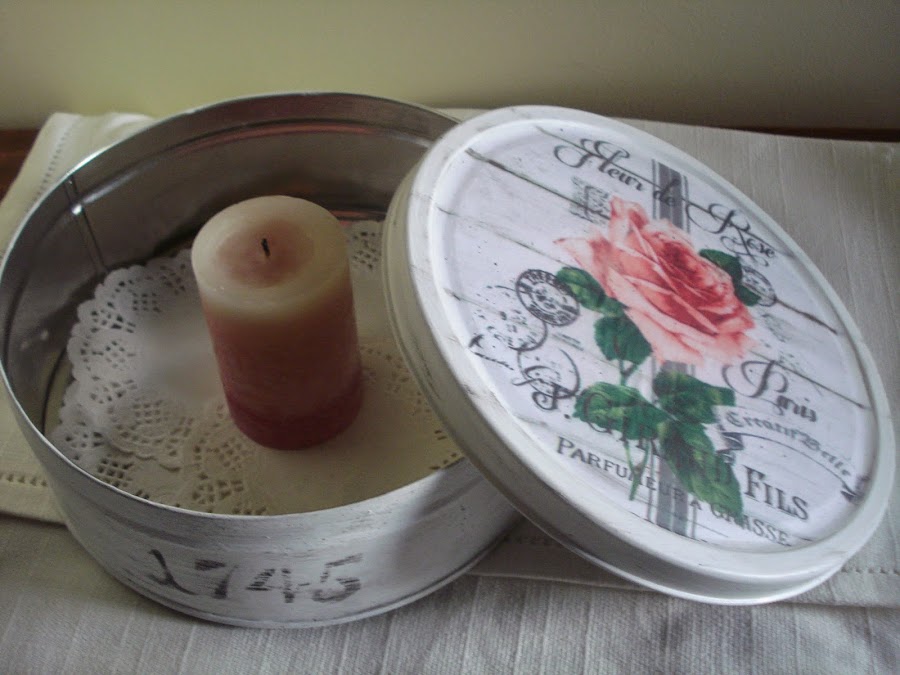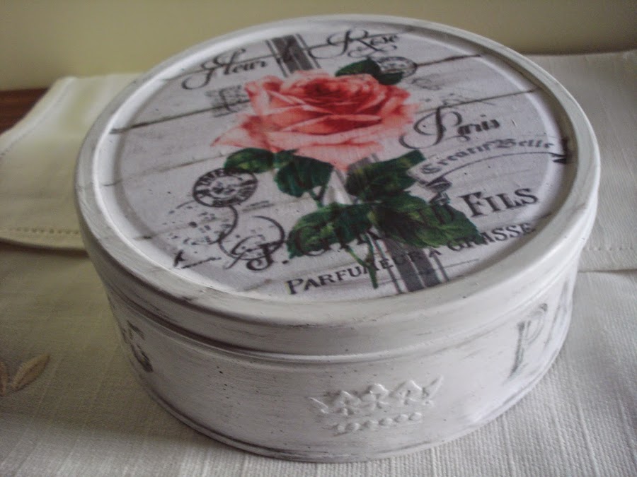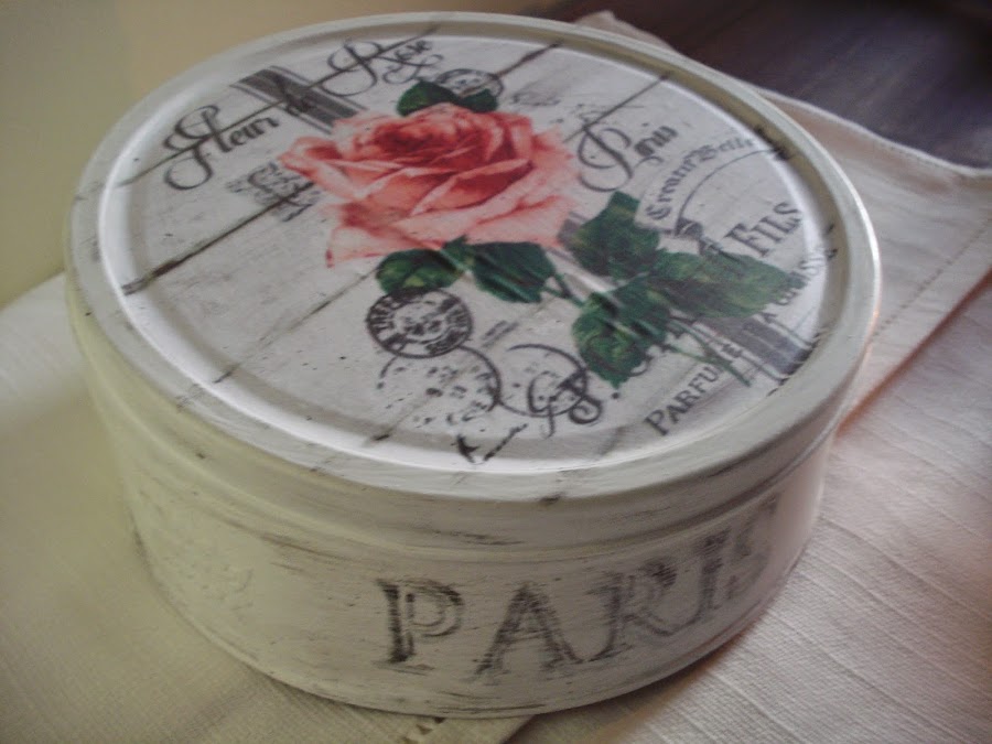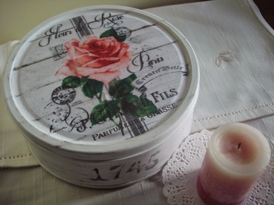 En la tapa una preciosa lámina que pegué con cola blanca diluida con un poco de agua.