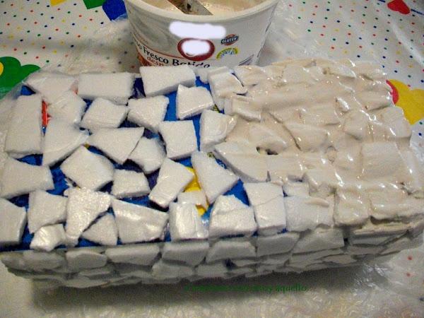 Pero quise hacer mi versión en el tetrabrik de leche y en vez de poner papel directamente puse enduído o aguaplast ( del que se usa para las paredes).