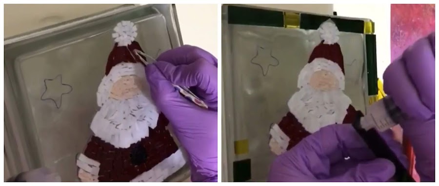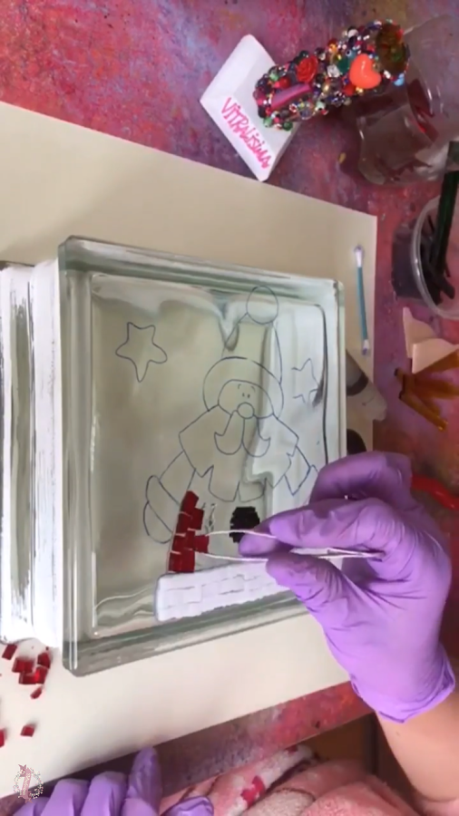 Hecho esto empezaremos a pegar el vidrio por dentro de la línea, esto porque el vidrio es translúcido y si lo pegamos encima de la línea se verá a al momento de iluminar la pieza