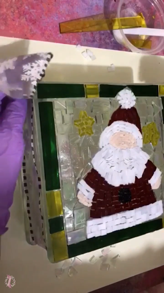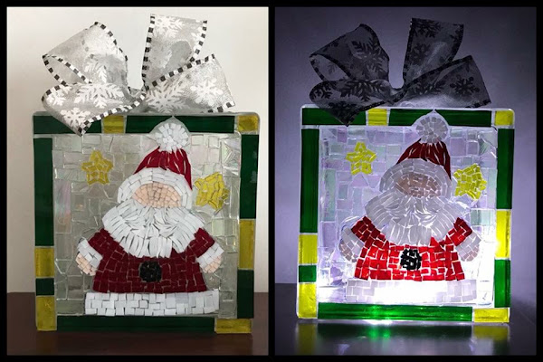 finalizamos poniendo cinta navideña decorativa en el borde del bloque y las luces navideñas, hecho esto hemos finalizado.