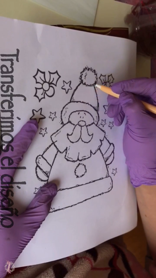 Lo primero que debemos hacer es transferir el diseño al bloque de vidrio, esto lo hacemos poniendo debajo del dibujo una hoja de papel transfer, calca o carbón y luego con un lápiz repasamos la figura