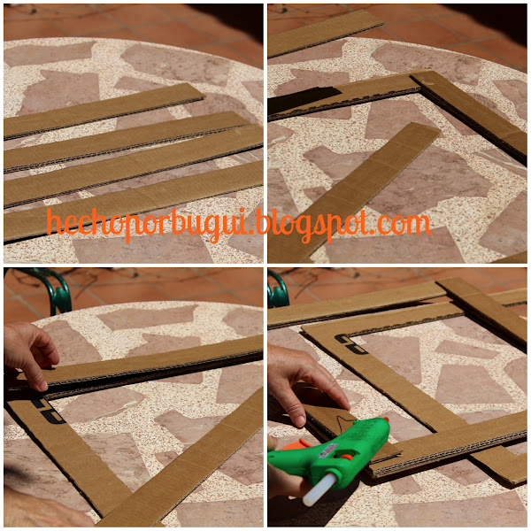 4.- Como mi caja de cartón solo tenía dos lados de la medida necesaria, tuve que hacer el tercero cortando unos listones de cartón y pegándolos con silicona.