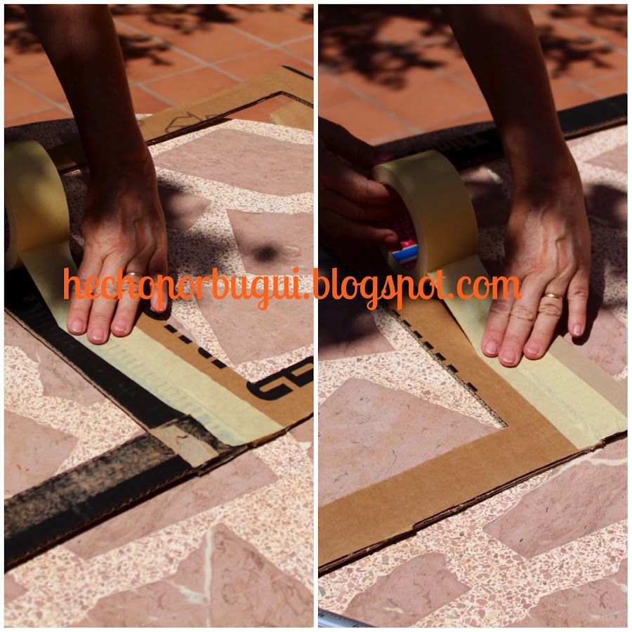5.- Una vez que están los tres lados, los uní entre sí con cinta de pintor por la parte más sucia del cartón.