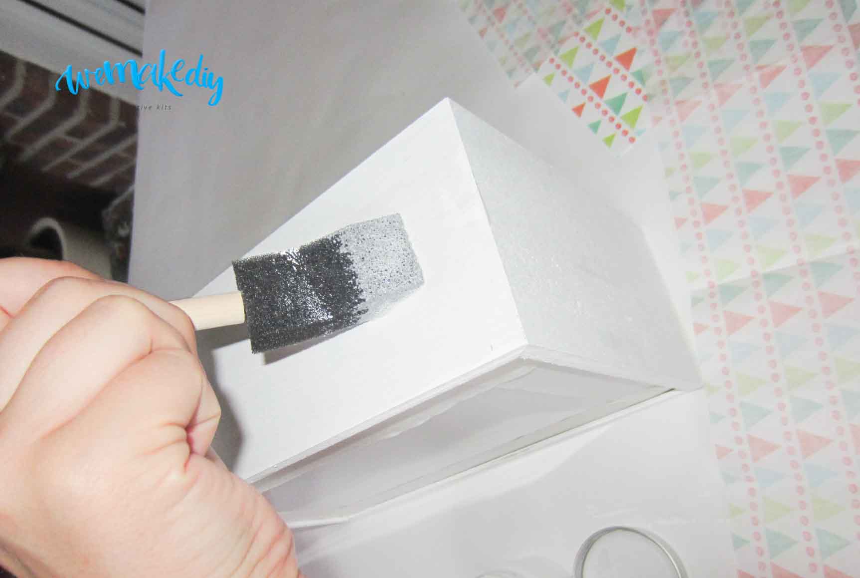 Lo siguiente que vamos a hacer es pintar la caja de blanco. ¿Para qué pintarla si la vamos a decorar después? Muy sencillo: pintamos el interior para que así la luz, una vez terminada la caja, se vea más brillante por el reflejo en las paredes de la caja. Pintamos el exterior para que sirva de base blanca y al pegar el papel los motivos se vean más definidos y bonitos.
