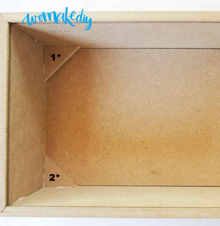 2* Las esquineras pequeña queda pegada en el lado opuesto. En este caso no hay separación entre la "tapa" y la esquinera.
