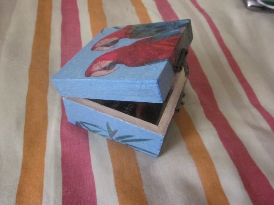 Caja de madera con decoupage de loros