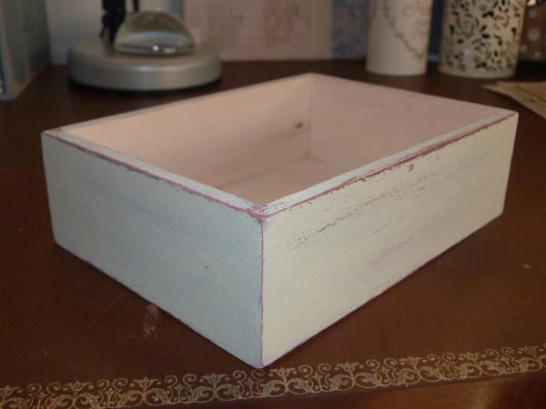 Para el color de base, preparé un tono similar al marsala, un poquito más oscuro quizá. Con él pinté toda la parte inferior de la caja y después pasé abundantemente una vela para desgastar el tono mantequilla que apliqué después. Ya sabéis que es importante que el color sea lo más similar al de la servi para integrarla perfectamente en la madera.