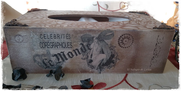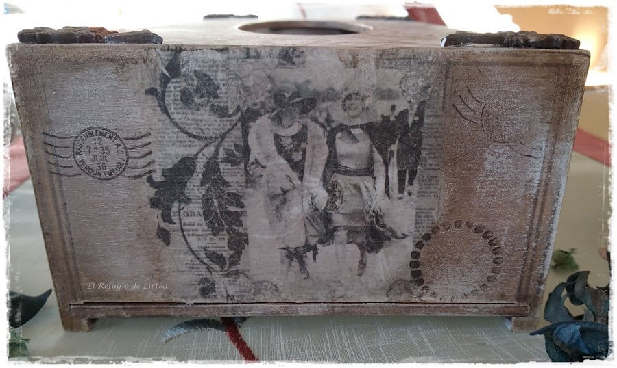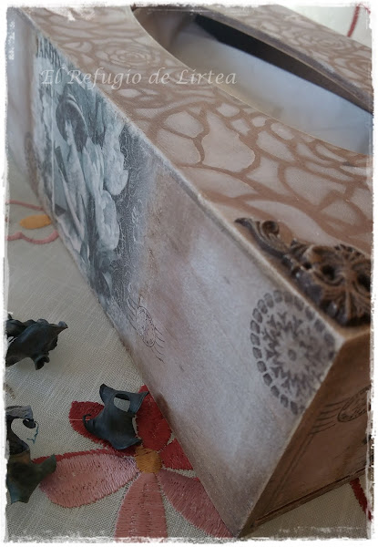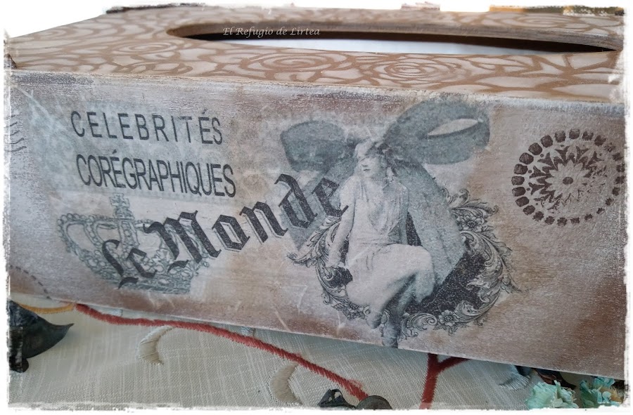 He utilizado un papel de arroz que me parece precioso en tonos grises con imágenes de los años 20.