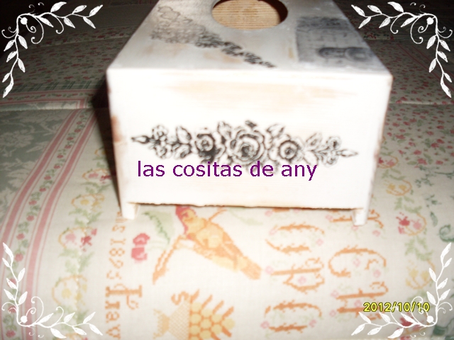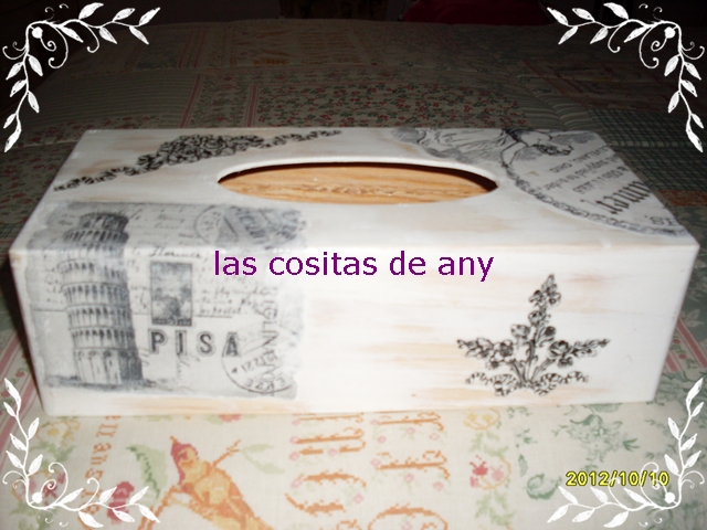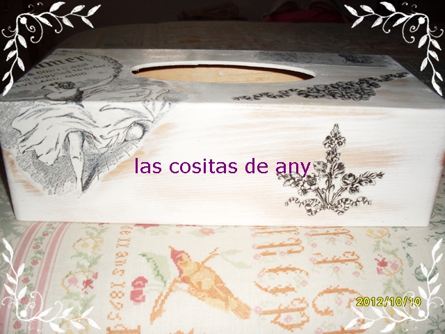 va la cosa de cajas de pañuelos,jajajajaj.....esta esta con transfer y gesso solamente...me encanta como ha quedado de fina