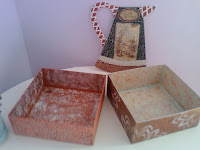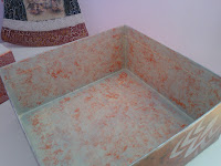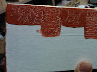 En los laterales doy craquelador de un paso y cuando está seco paso pintura acrlica en color rojo ladrillo en pinceladas cruzadas para que quede como un cuadriculado con diferentes craquelados.