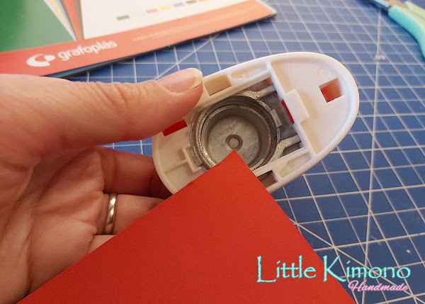 2. Vamos a redondear uno de los extremos, para ello podemos ayudarnos con la troqueladora de circulo usándola por la parte de fuera, tal y como muestran las imágenes de abajo.