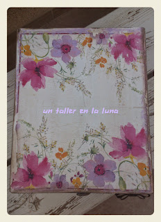 Por dentro va pintada en color lavanda y para el fondo le he puesta un papel decorado.