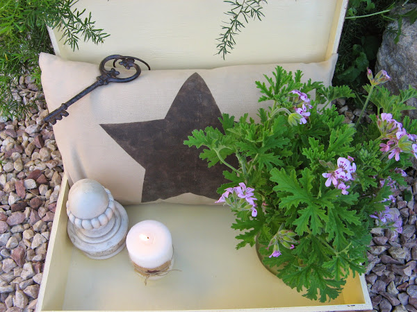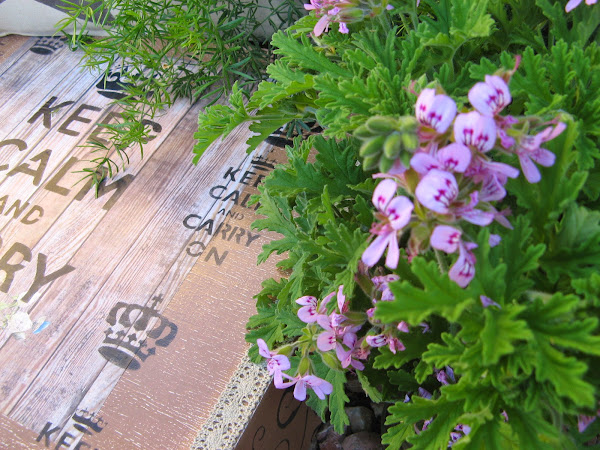 esta plantita es un geráneo con olor a limón....si pudierais olerla...es super agradable, una pena que solo florece en primavera, pero ahora me aprovecho y la voy "podando" todos los dias para poner ramos por toda la casa