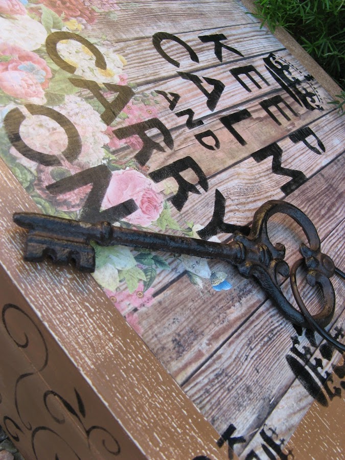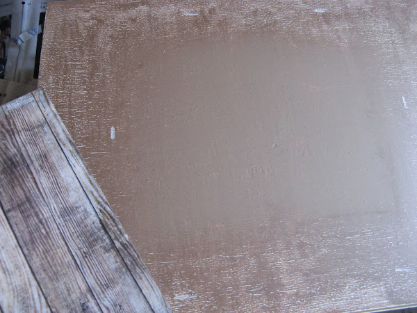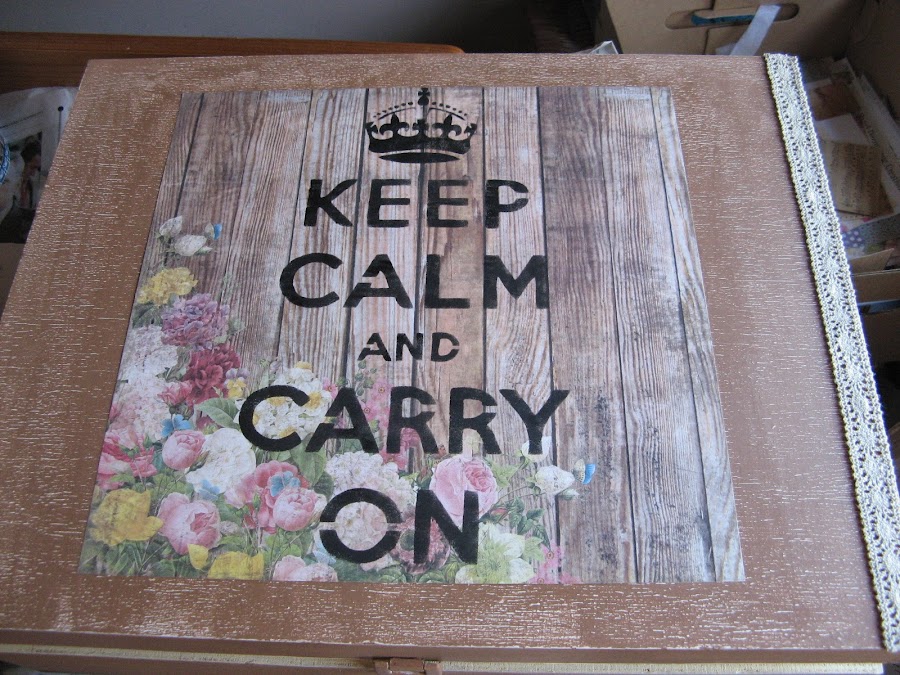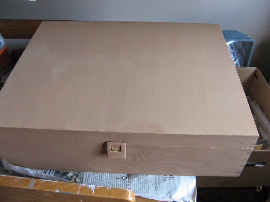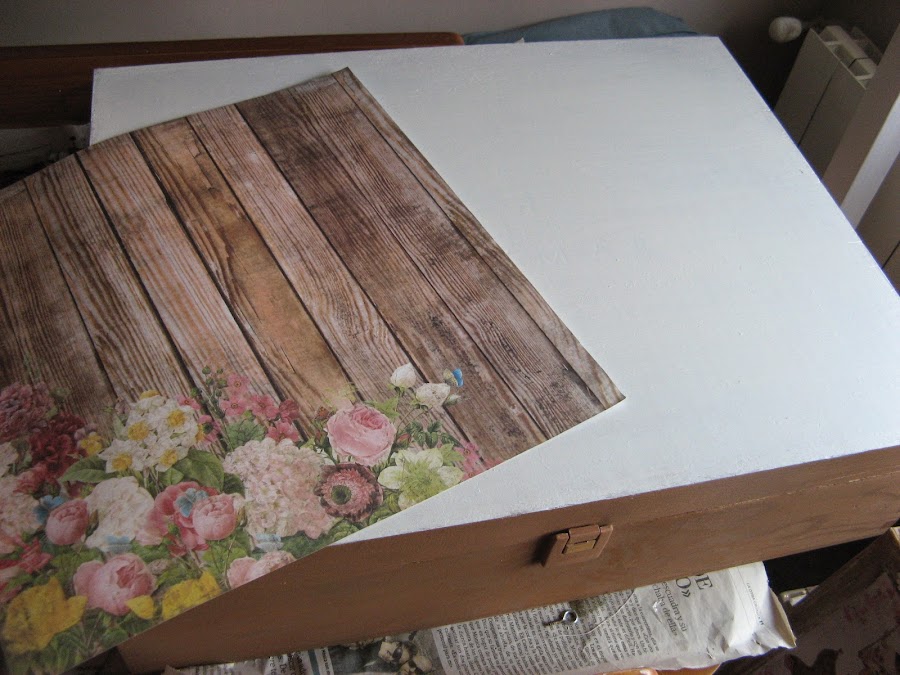 ......la parte de abajo de color terracota.......y entonces empecé a buscar un papel que le fuera bien. Cuando ya tuve claro que quería ponerle este tan bonito decidí igualar la tapa con el mismo color terracota....
