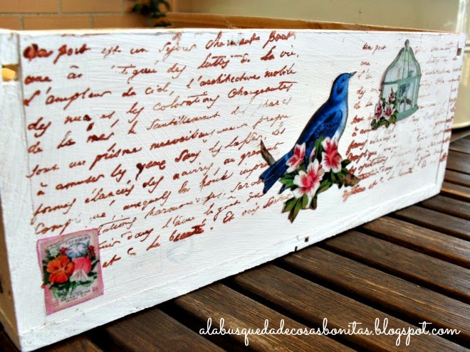 Y luego, aproveché para estrenar un sello con texto que me compré en Semana Santa y que no había usado. Y como puedes ver, perfecto perfecto no quedó, pero al fin y al cabo, es una caja de batalla, algo rústico, para la terraza...
