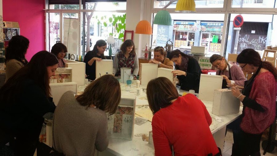 Este fin de semana pasado eran los talleres en Doble A+A en Barcelona. No puedo decir otra cosa que me ha encantado la experiencia. Qué bien lo pasamos tanto en el taller de la mañana, como en el de la tarde. Se me hizo cortísimo y a las chicas que asistieron les quedaron unas cajas preciosas.