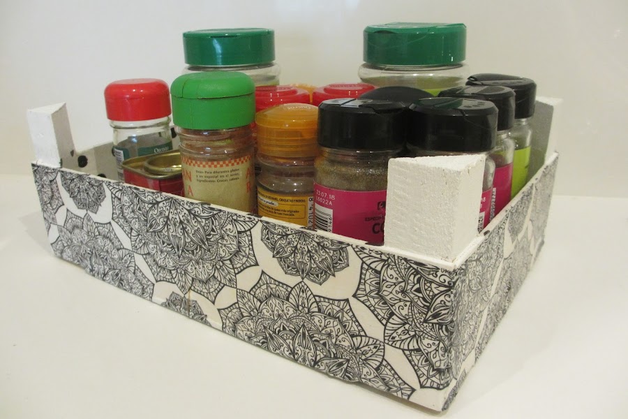 Y ya está!! Ya tenéis una preciosa caja decorada por muy poco y que os sirve para guardar cualquier cosa, yo hice una para guardar pintura y otra para las especias
