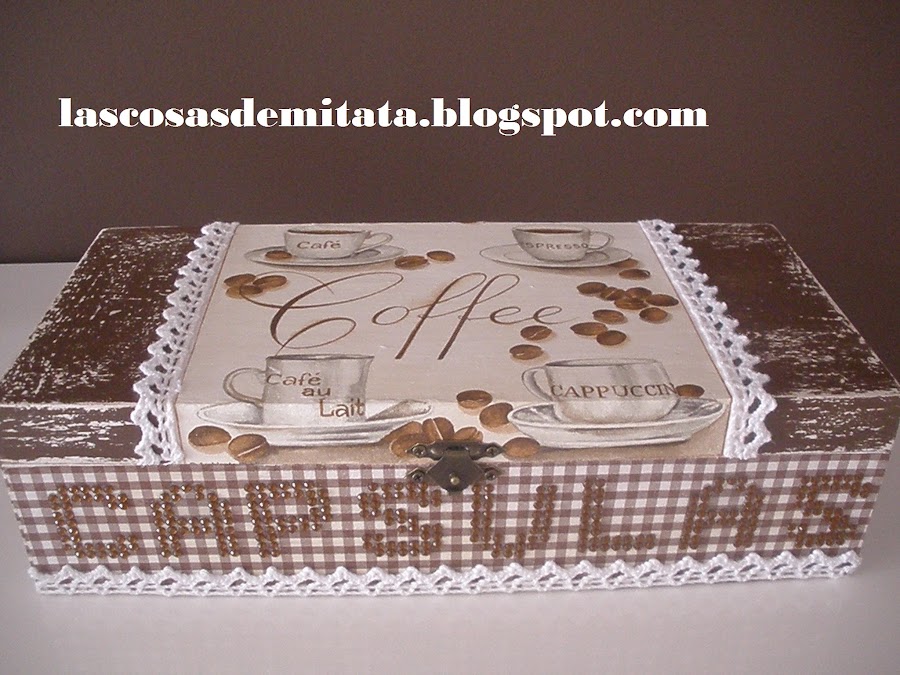 Aquí os muestro una caja decorada para guardar las cápsulas de café, su destinataria soy yo misma :-P estaba un poco cansada de tenerlas sueltas rodando por los cajones de la cocina así que ayer mismo me puse manos a la obra y así ha quedado!!