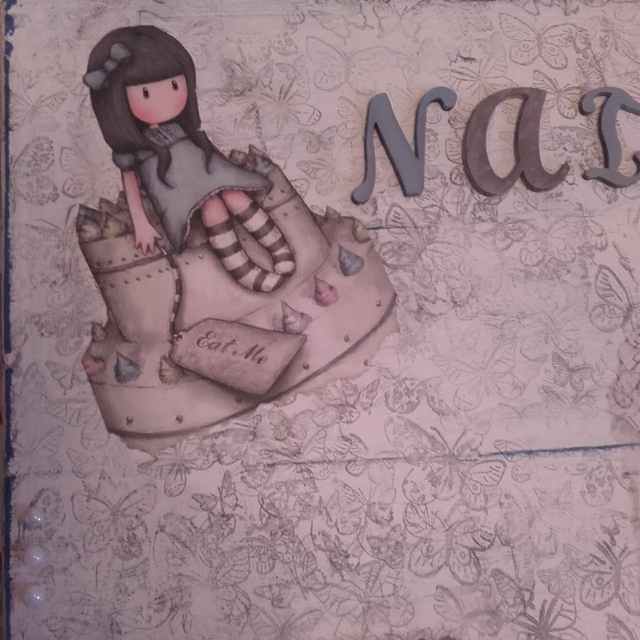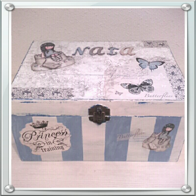Se trata de una preciosa caja de madera decorada con imágenes de Gorjuss , sellos , etc..